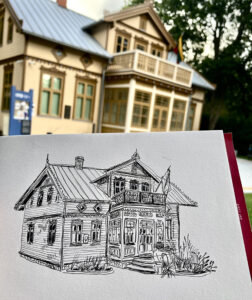 Nors telefono kamera yra puiki priemonė vaizdams, detalėms fiksuoti, tik piešimas leidžia ištiesų įsižiūrėti ir pamatyti įdomių dalykų, kurių iš pradžių nepastebi. Nebūtina būti dailininku, kad galėtum eskizuoti, tereikia popieriaus, pieštuko ir truputį dėmesio. Dirbtuvių metu, menininkė dalyvius supažindino su eskizavimo principais. Dirbtuvių dalyviai eskizavo Jono Šliūpo muziejaus etnografinių žaislų parodoje „Laimingi, nes vaikai“ ir muziejaus kieme. Dirbtuvių metu, autorė parodė savo eskizus sukurtus per pastarąsias dienas Palangoje.